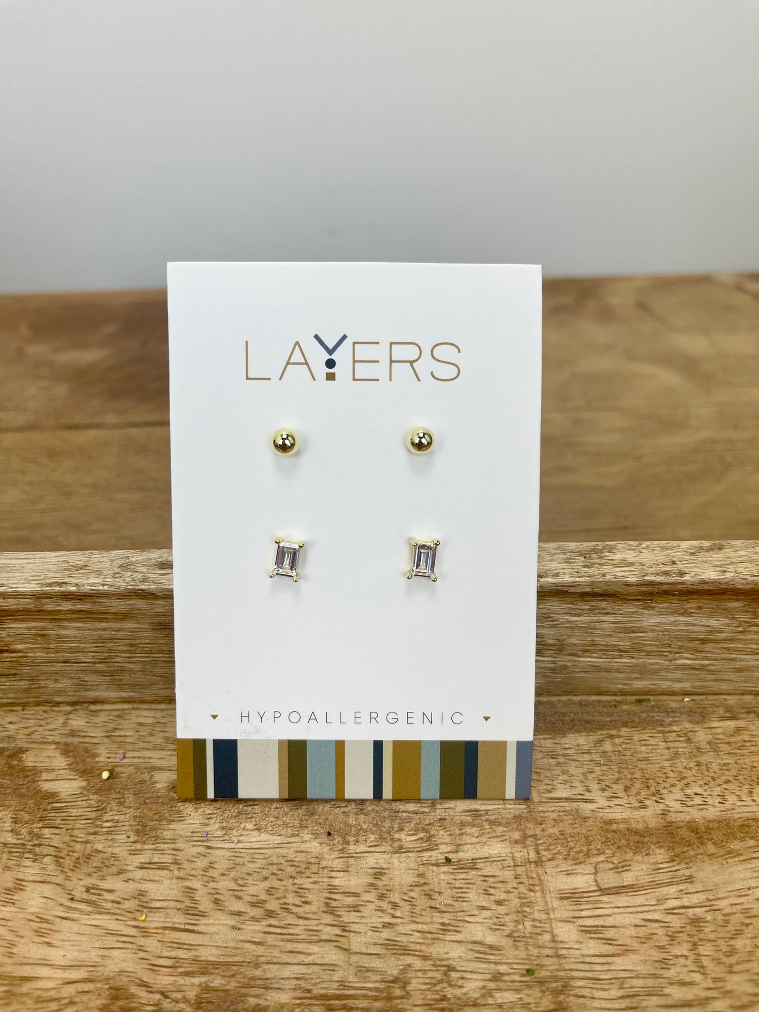 Gold Baguette & Ball Duo Layers Earrings is backordered and will ship as soon as it is back in stock.