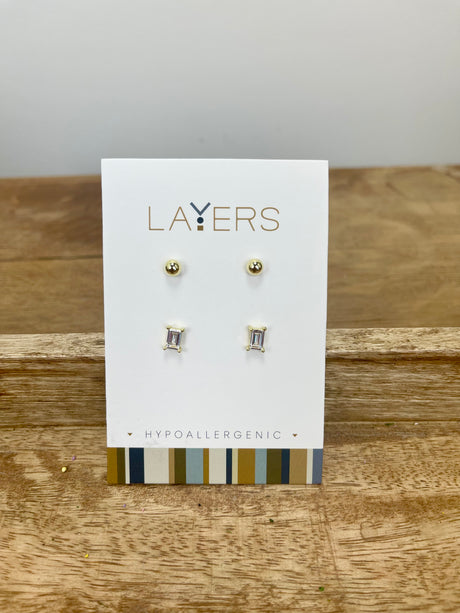 Sale price $5.99 Regular price $8.50Unit priceUnavailableVery low stock (1 unit)Gold Baguette & Ball Duo Layers Earrings