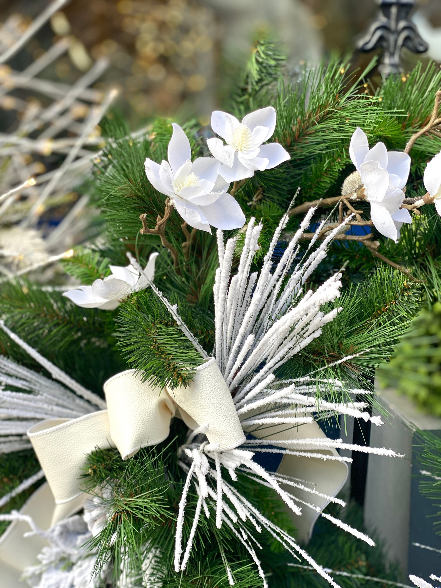 Spice up any wall, door, or entryway with this festive and stunning silk floral design.