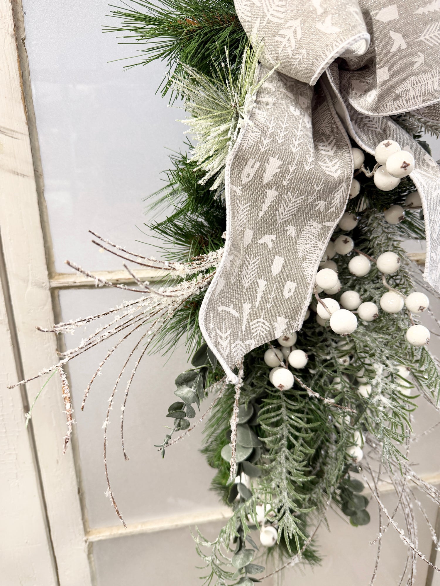 Swags have so many uses! We love to use them as a base for a tray design, on our front door, or even on an appropriately sized lantern. You can even run a light strand through them for a holiday glow. We love to find new ways these versatile florals can be used.