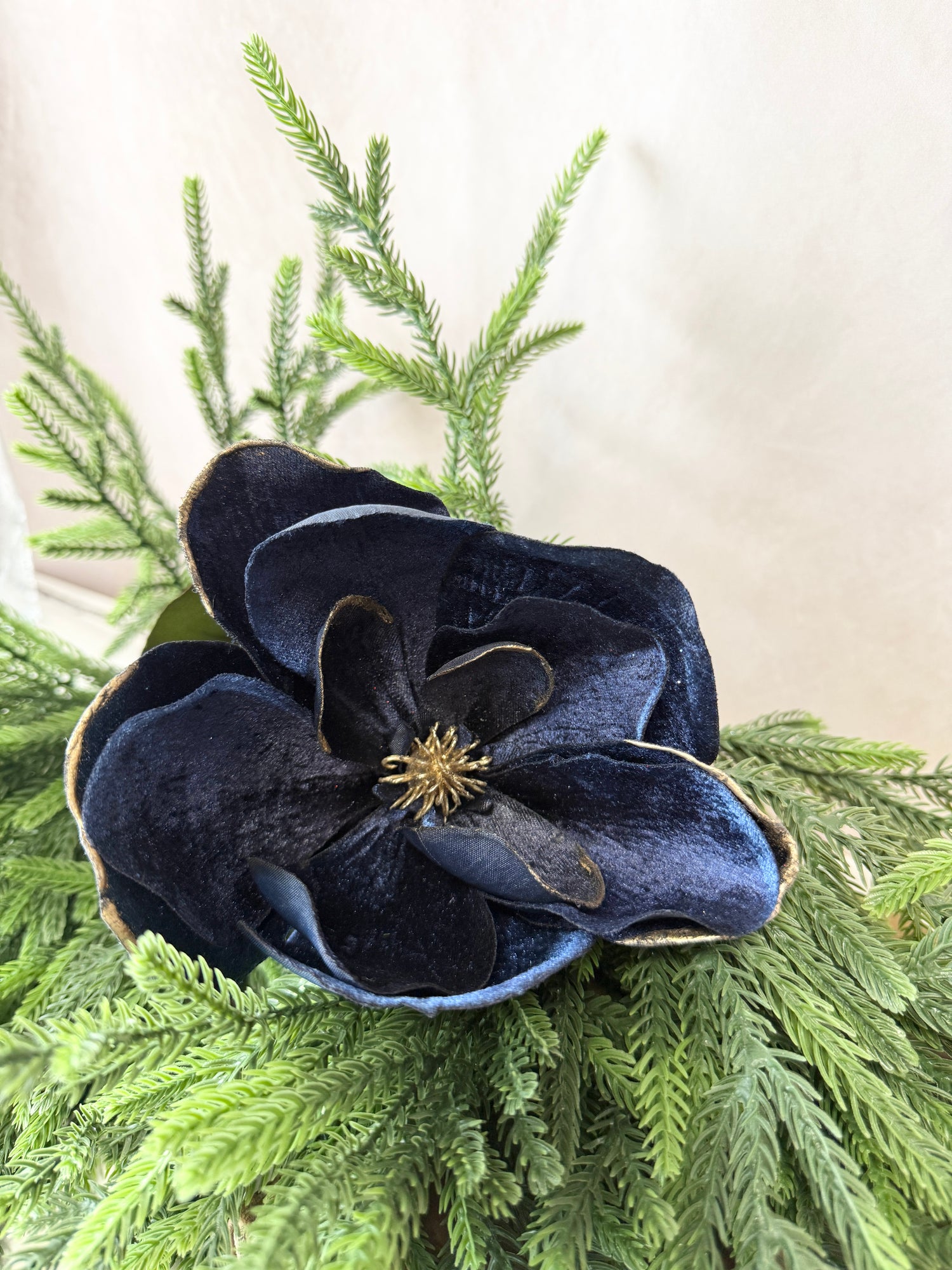 Navy Velvet Magnolia With Gold Edge