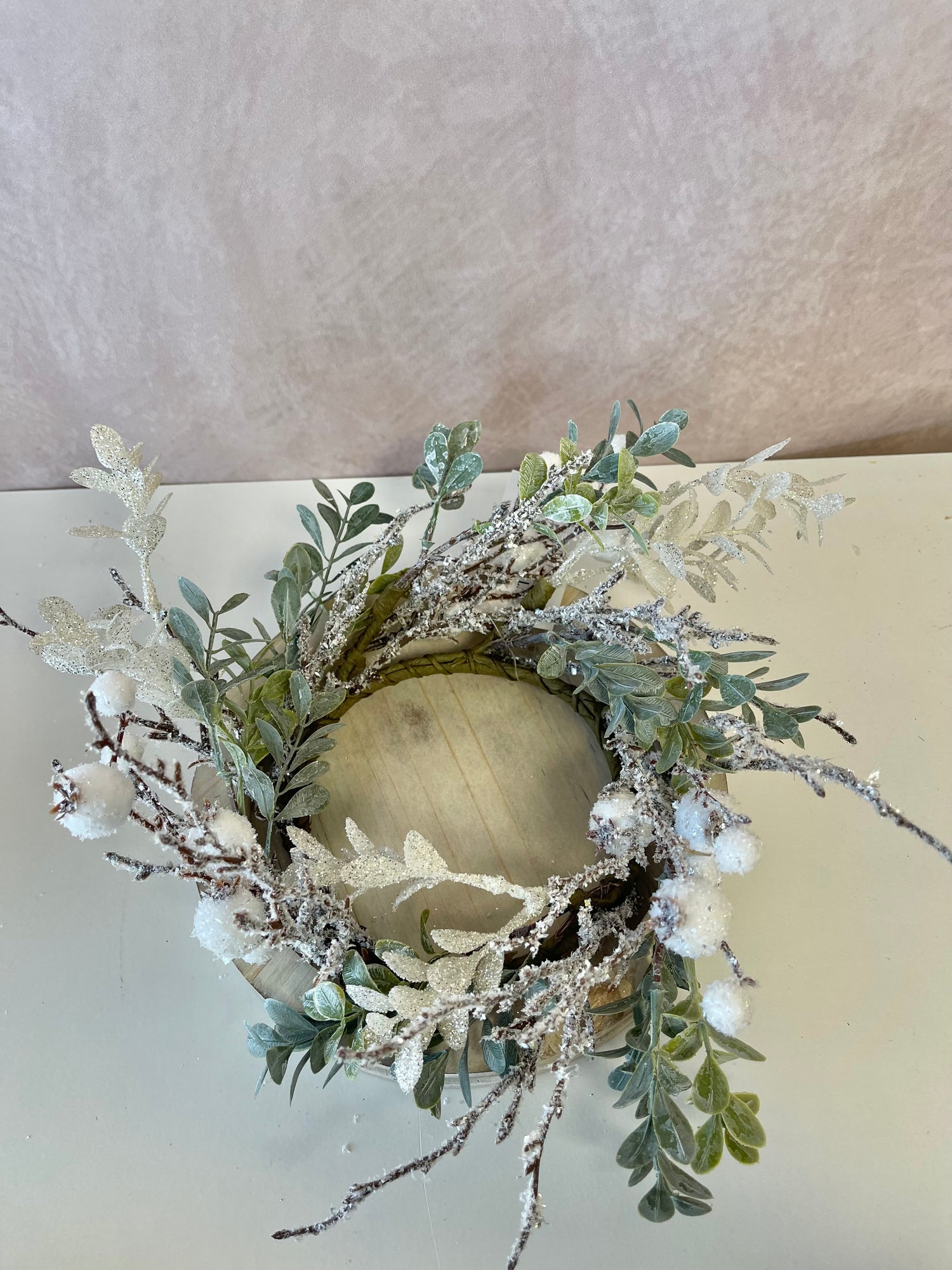 Sage Green and Snowberry Candle Ring