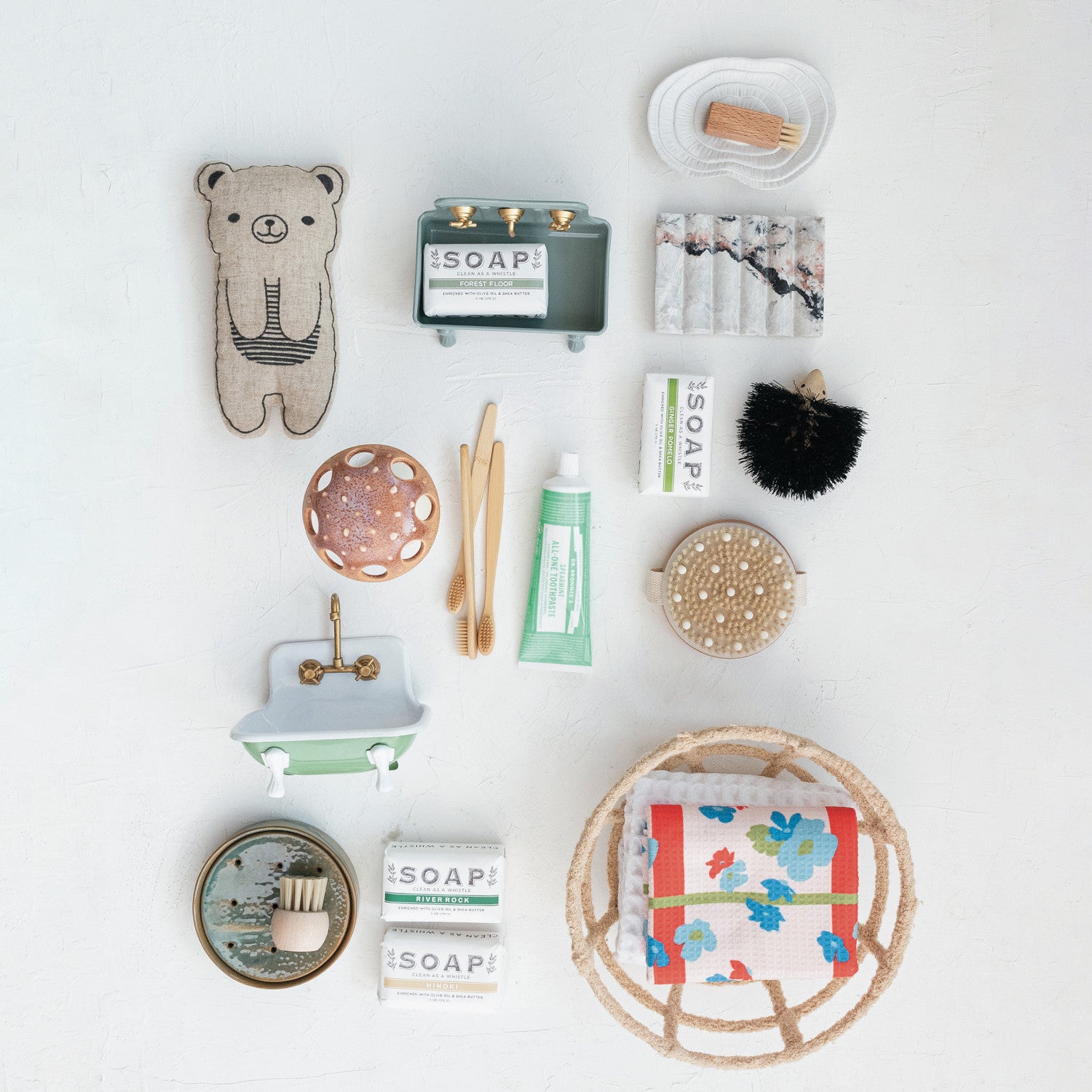 This Metal Soap Dish, with its unique sink and faucet design, is finished in an elegant grey and gold, adding a touch of sophistication to the bathroom setup. The piece measures 5.75 inches in length, 4.25 inches in width, and 4.5 inches in height, providing ample space for soap without taking up too much room on the countertop. Whether the bathroom features a farmhouse, rustic, or industrial theme, this soap dish fits right in, offering both visual appeal and practical use. Its sturdy construction ensures longevity, making it a valuable addition to daily routine.