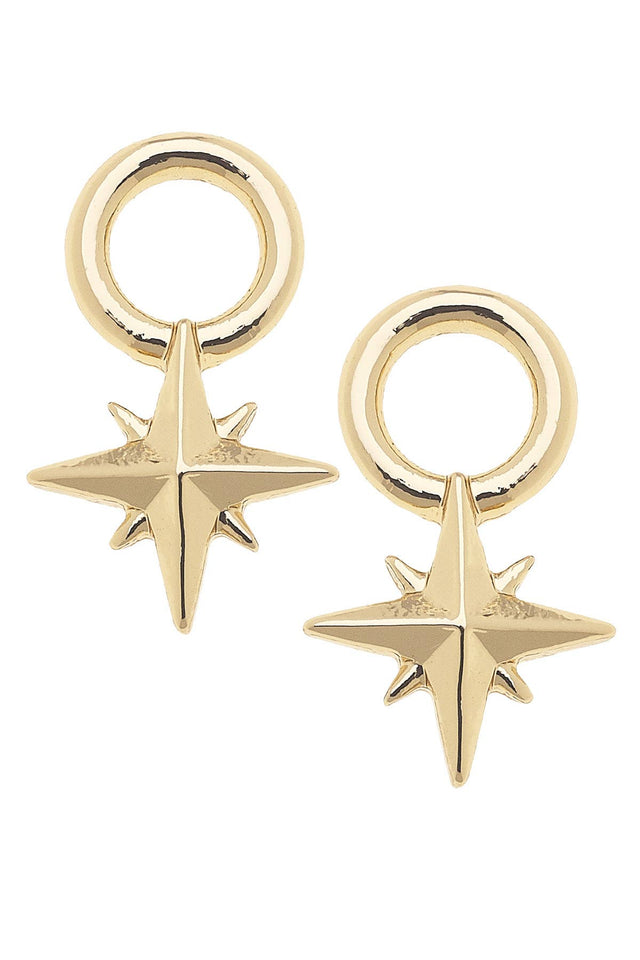 Shine bright with these North Star huggie charms. Perfect for guiding your look to effortless elegance. DETAILS Base Metal with Shiny Gold Plating .75"L x .5"W