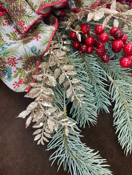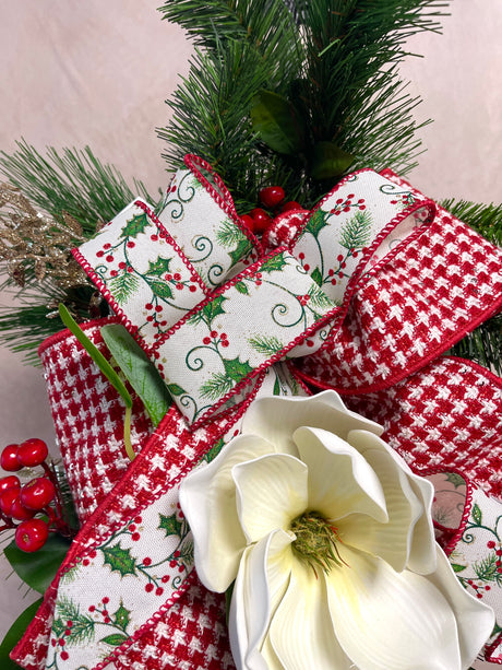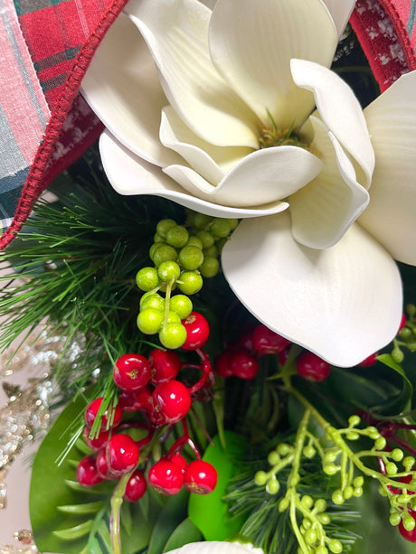 34" Magnolia Christmas Grace Teardrop Swag Design 1