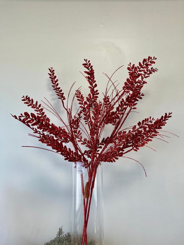 Red Glitter Berry Grass Spray