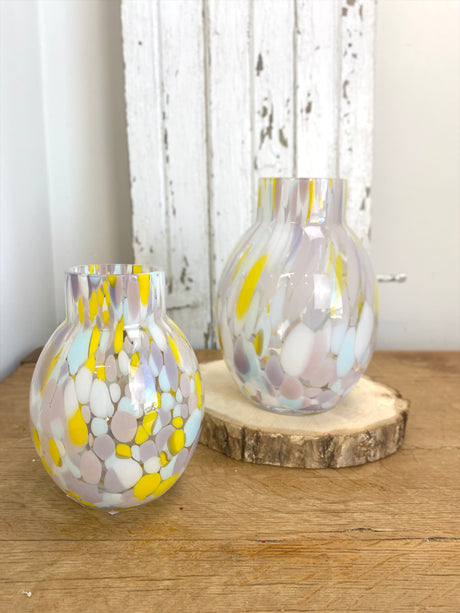 7" Yellow Blue Multi Glass Vase