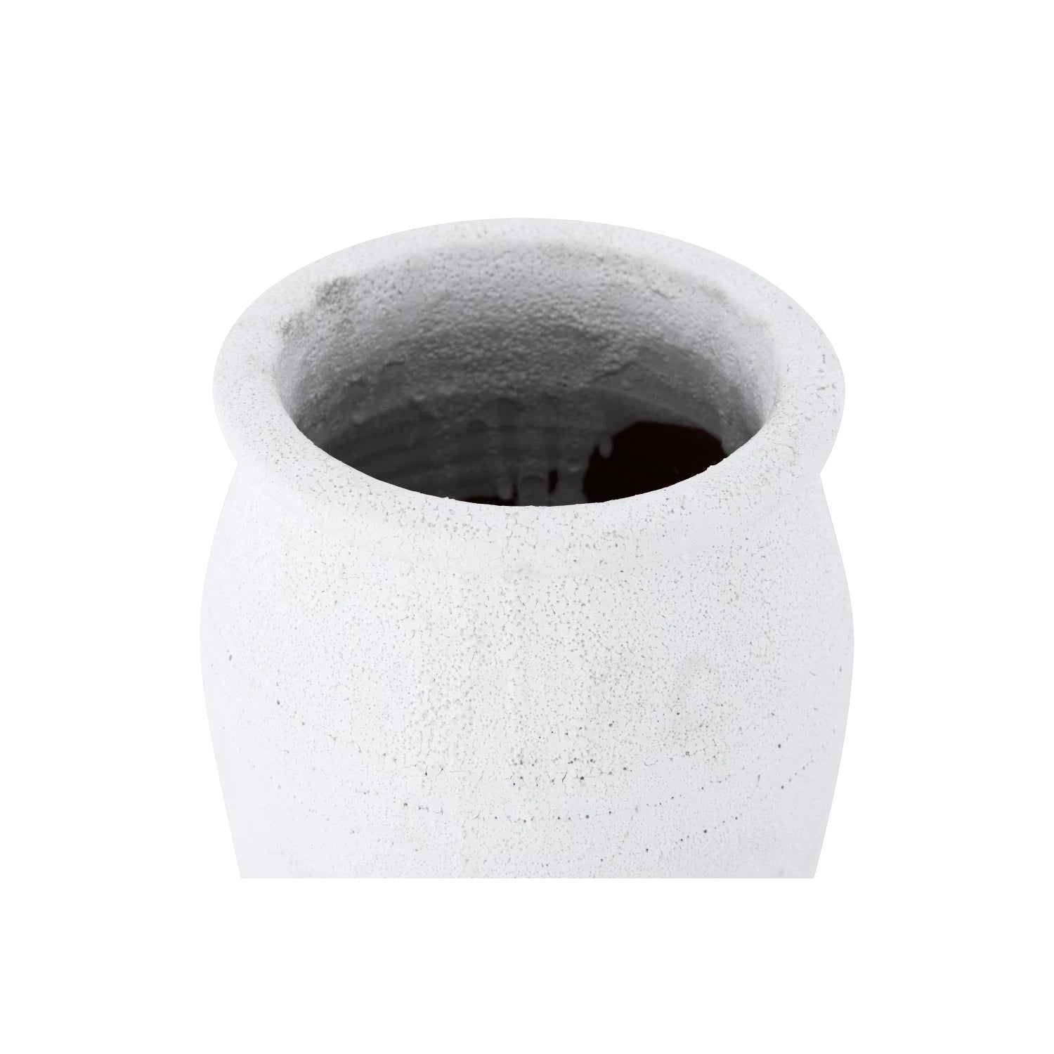 This white terra-cotta crock with volcano glaze will add style and personality to any home. This crock is a beautiful piece that features a terra-cotta body with a white volcano glaze that creates a textured and crackled look. The glaze has a matte and rough surface that contrasts with the smooth and glossy terra-cotta. This crock is made of high-quality terra-cotta that is durable and sturdy. The volcano glaze is a technique that involves applying a thick layer of glaze to the pottery before firing, resulting in a bubbled and crackled surface that resembles volcanic rock. Each crock will vary slightly due to the nature of the technique, making it a unique and one-of-a-kind piece. This crock measures 6.25 inches in diameter and 7 inches in height. Whether placed on a countertop, a table, or a shelf, this crock will surely enhance the home décor with its rustic charm.