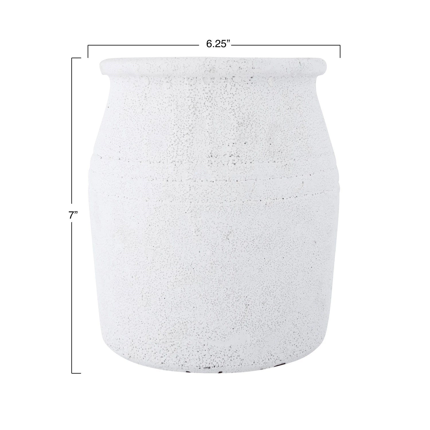 6-1/4" Round x 7"H Decorative Coarse Terra-cotta Crock, Volcano Finish, Distressed White (Each One Will Vary)