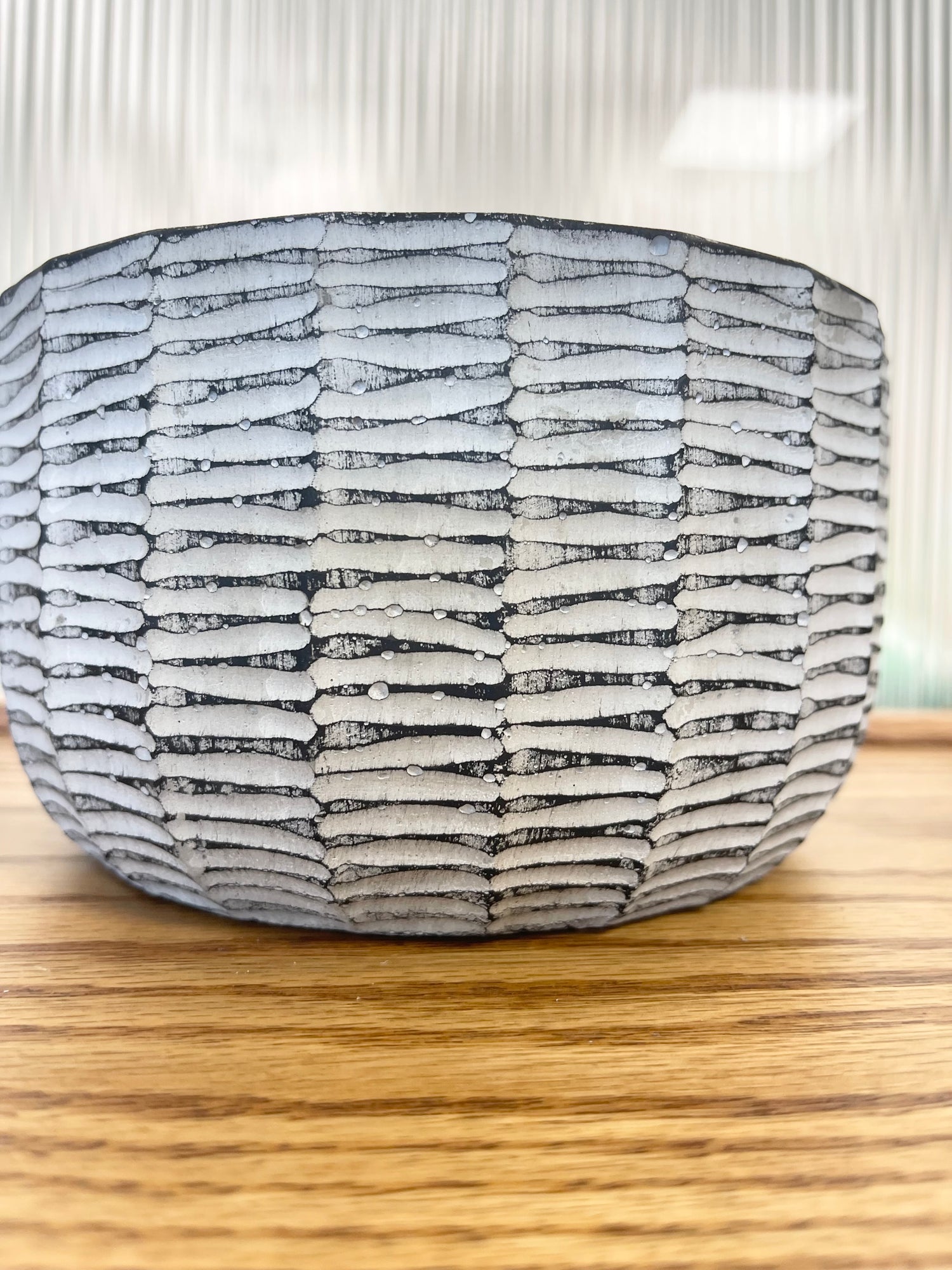 Short Carved Cement Black Pot