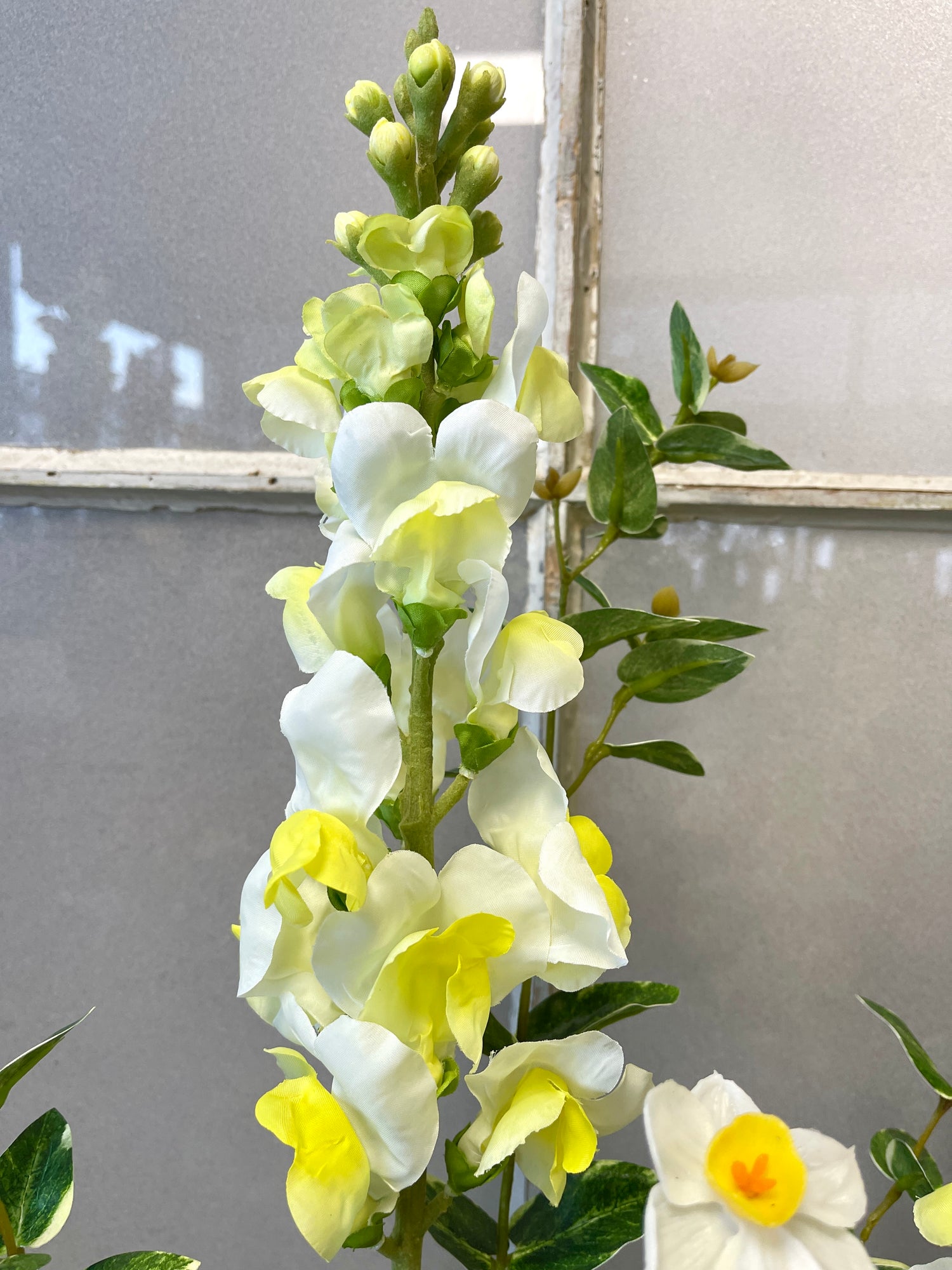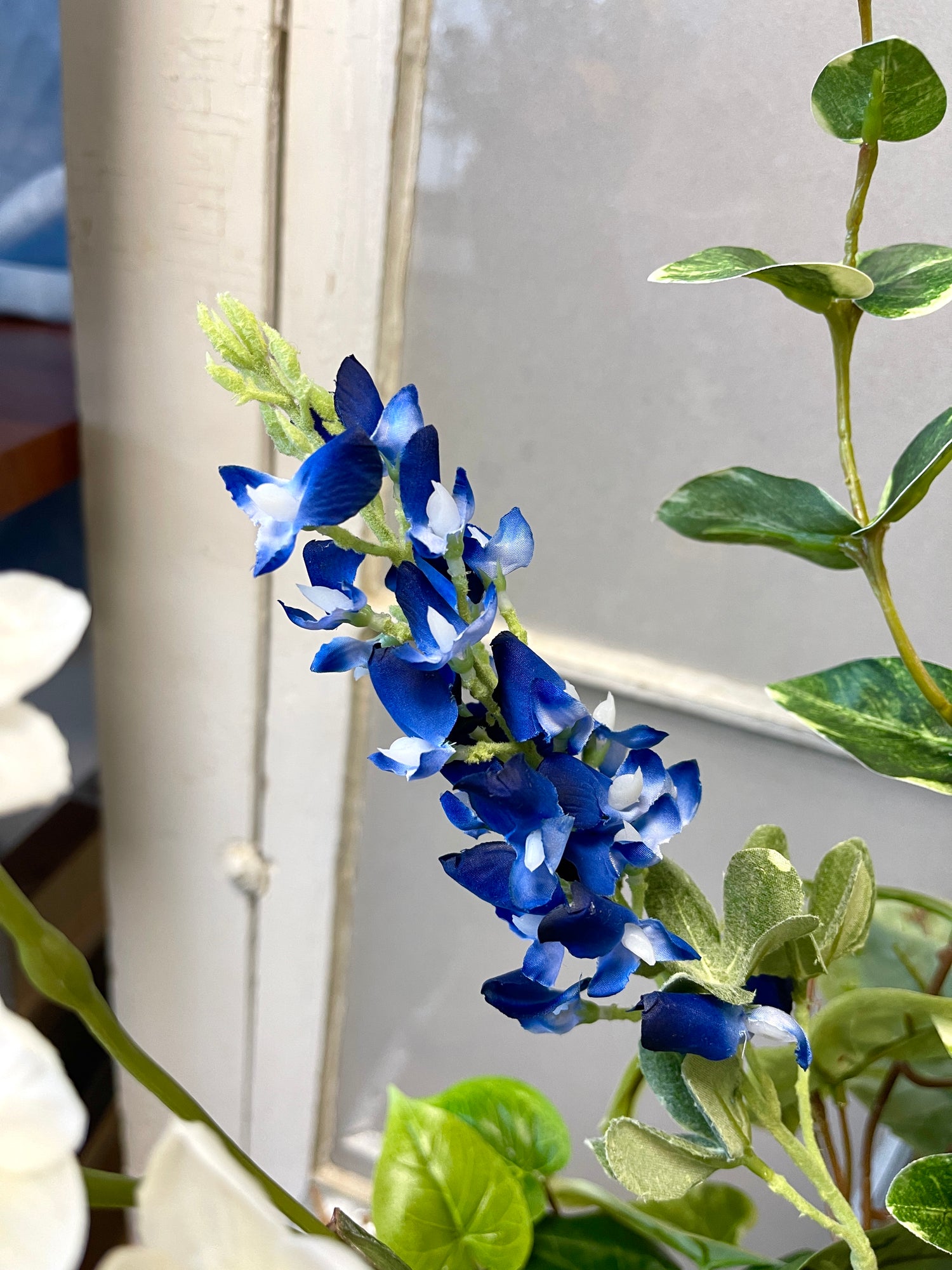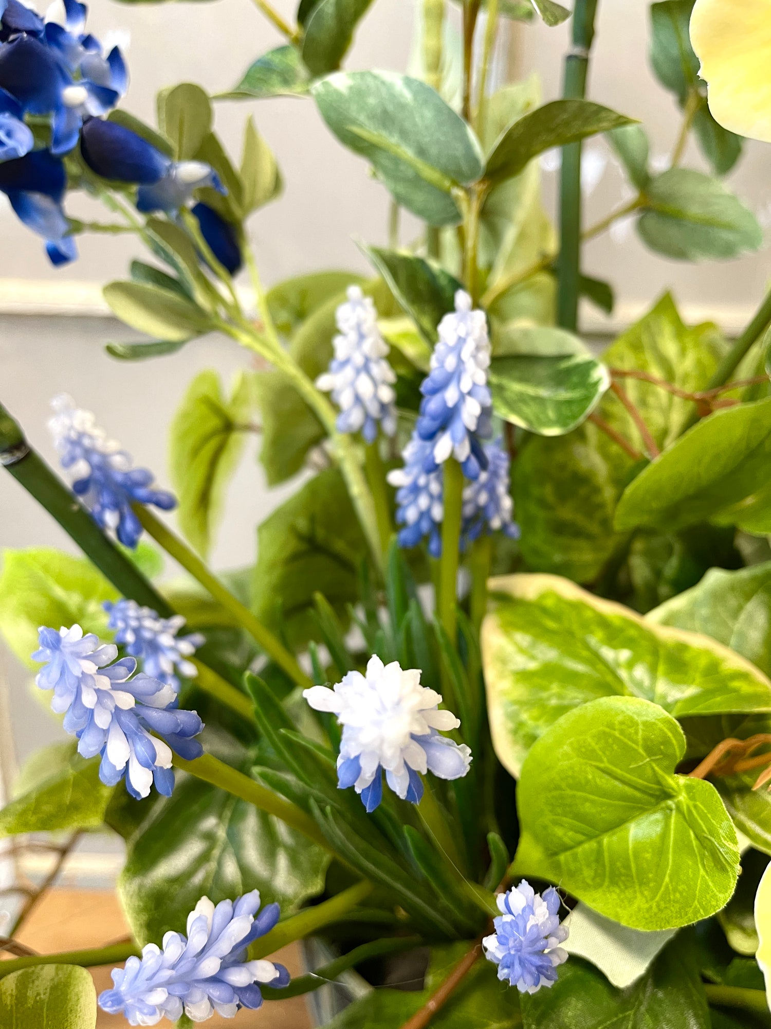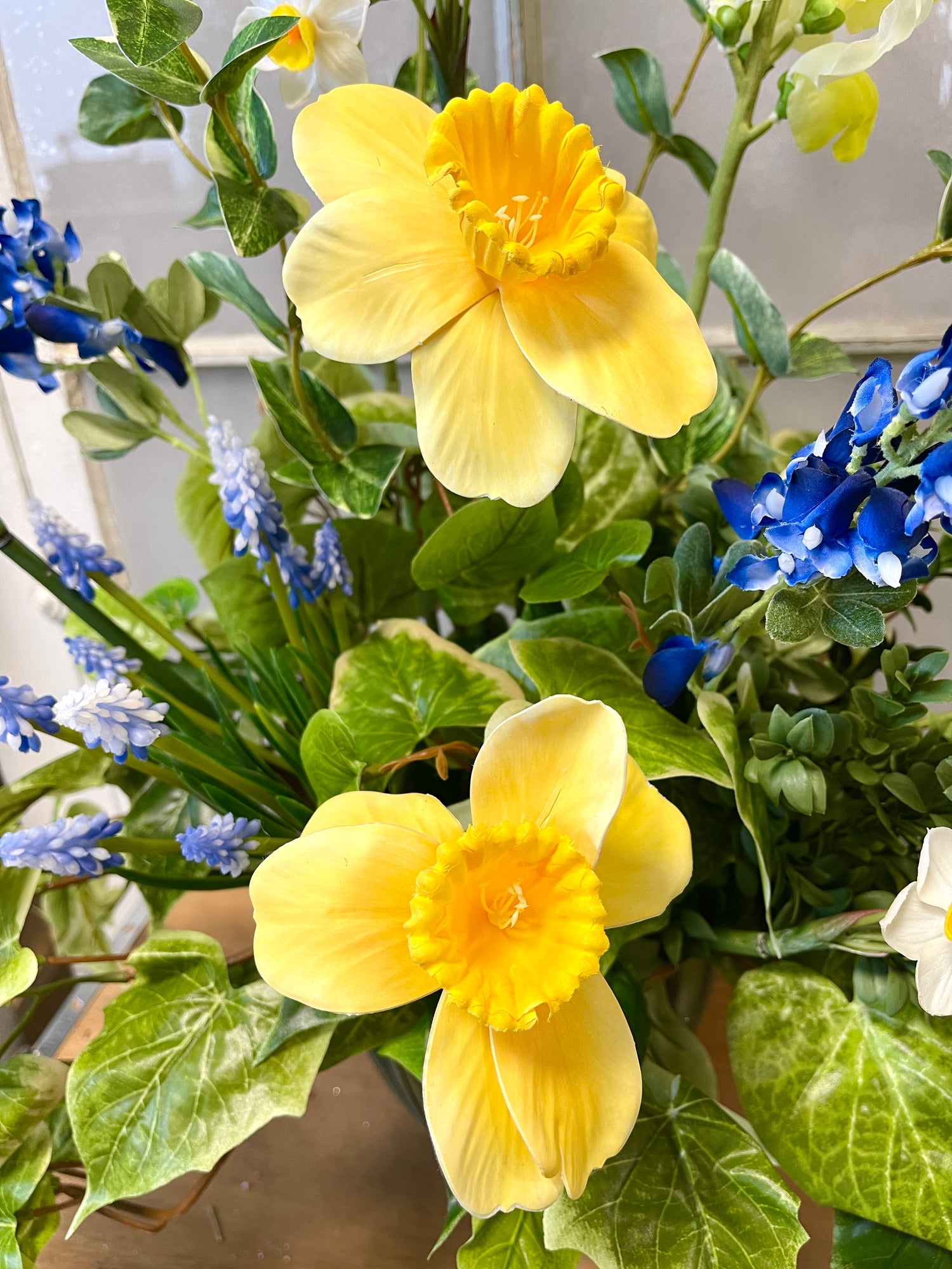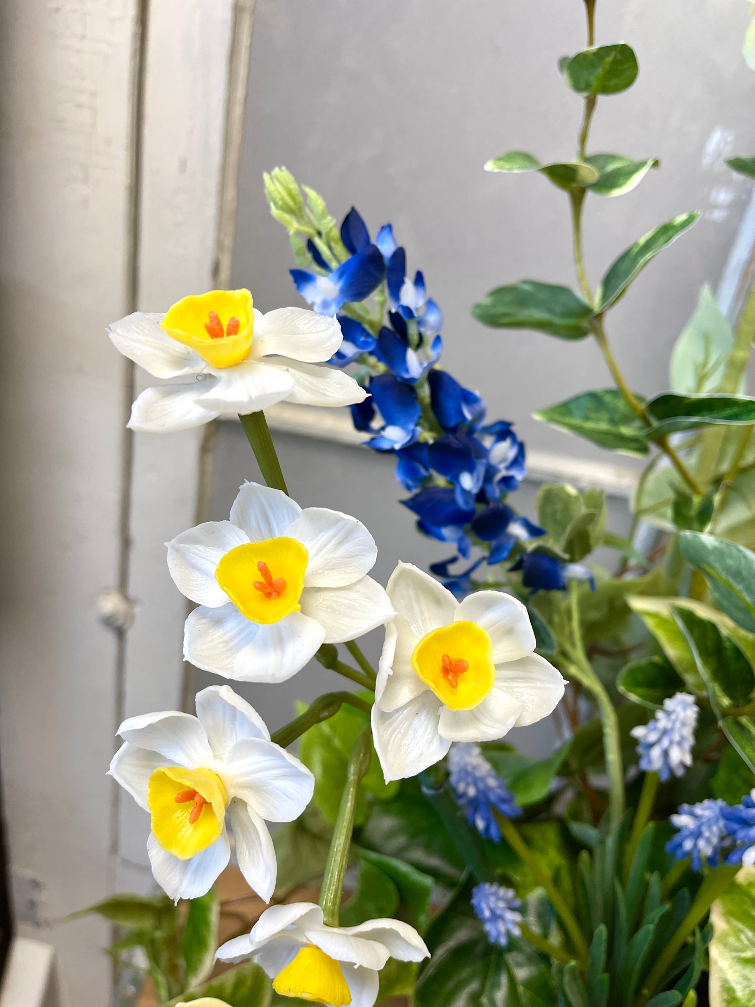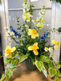This porch pot is made of high-quality outdoor-safe silk floral stems.