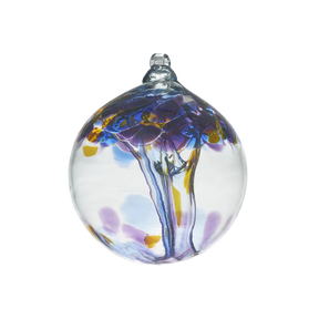 The Tree of Enchantment Collection is Kitras Art Glass’ signature creation. The glass “leaves” cascade across the top of this hanging orb and the “trunk” webbing is pulled through the interior from bottom to top.