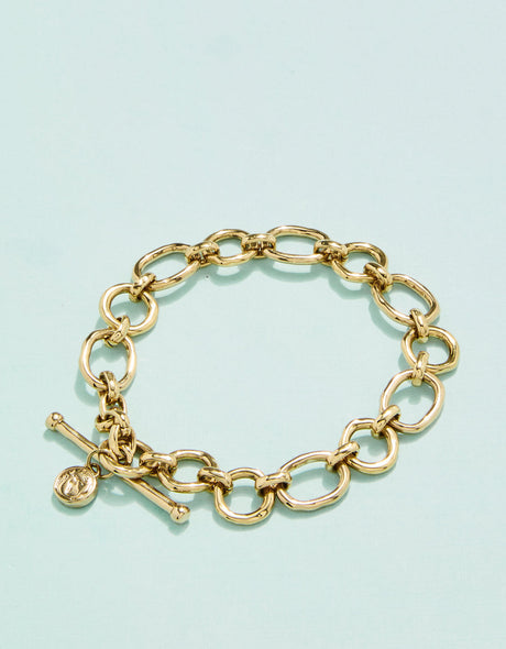 Regular price $32.50Unit priceUnavailableVery low stock (1 unit)Bella Multi-Charm Toggle Bracelet Base in Shiny Gold