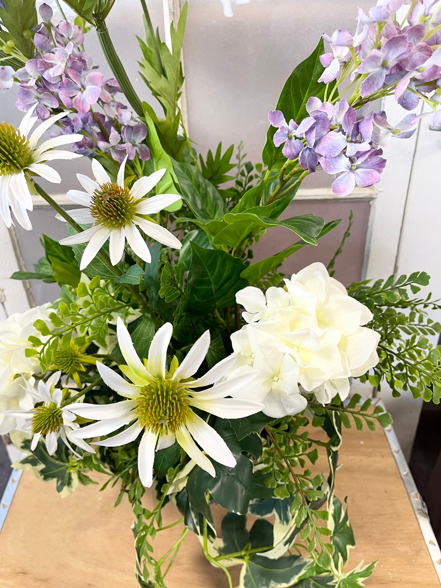 What is a floral design kit? It is like paint-by-numbers for flowers! We give you all the items needed to recreate these designs at home. Simply unpack your bundle of stems, use the reference photos provided or watch Amy's DIY Weekend replay, put the floral design together at home as shown or with your own flair!