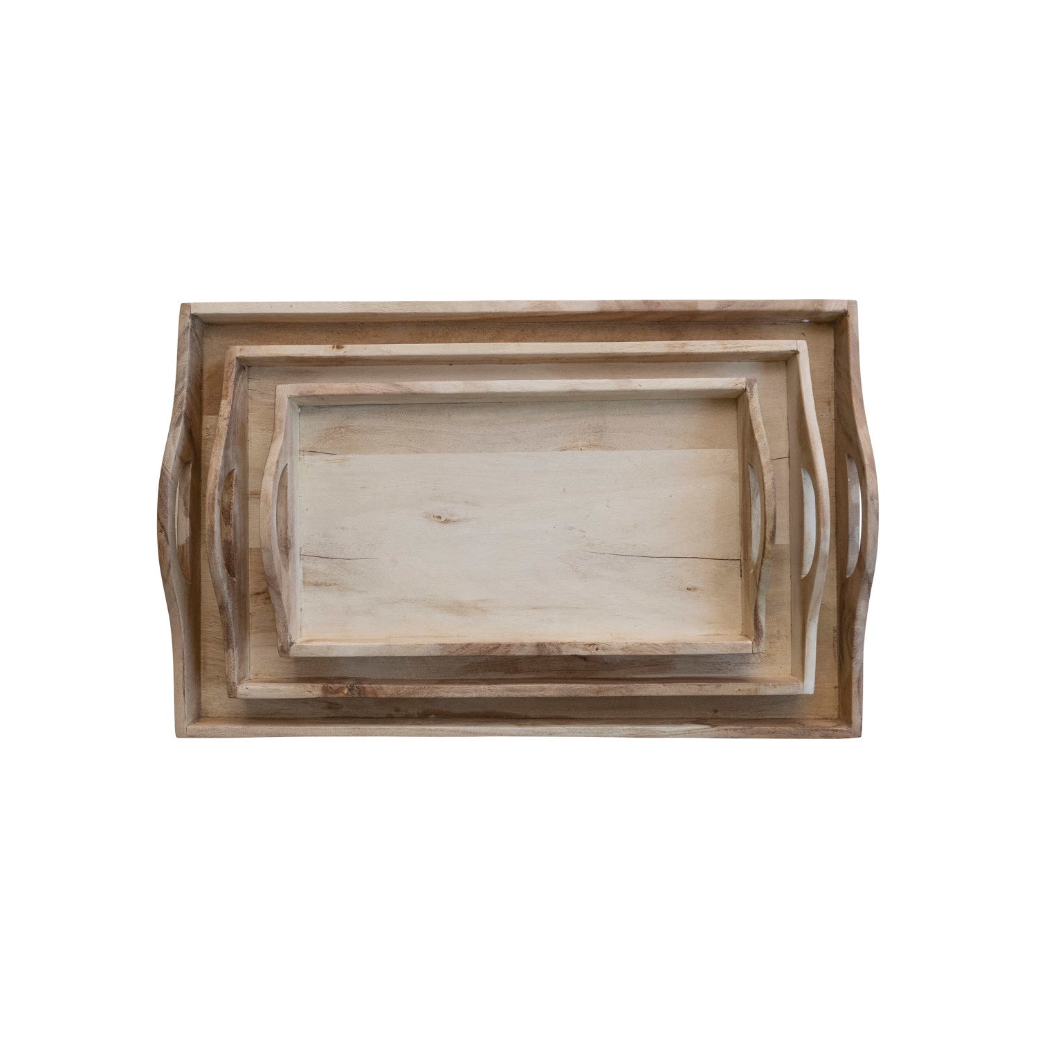 Rectangular Acacia Wood Trays w/ Handles, Bleached