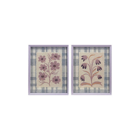 Wood Framed Glass Wall Decor with Flowers & Plaid Mat, Purple, 2 Styles