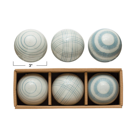 Regular price $32.50Unit priceUnavailableVery low stock (1 unit)Blue Hand-Painted Stoneware Orbs - 3 Styles