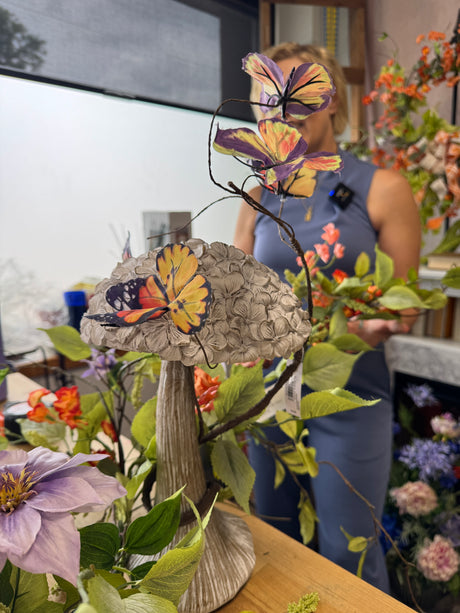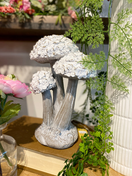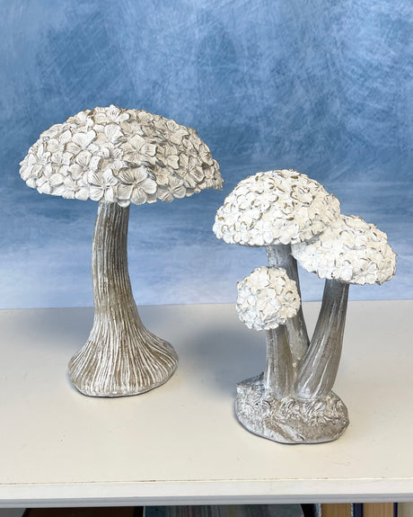Whitewashed Resin Floral Top Mushroom -2 Sizes