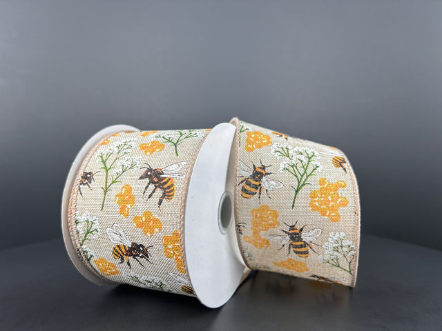 Natural Linen/Bees-Honeycomb-Baby'S Breath, 2.5"X10Y