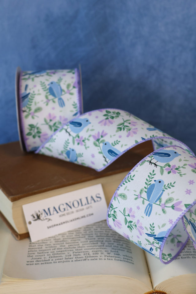 White Satin/Blue Sprng Bireds-Lav Flwrs, 2.5"X10Y