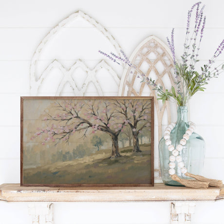 Spring Pink Blossom Tree Wood Art