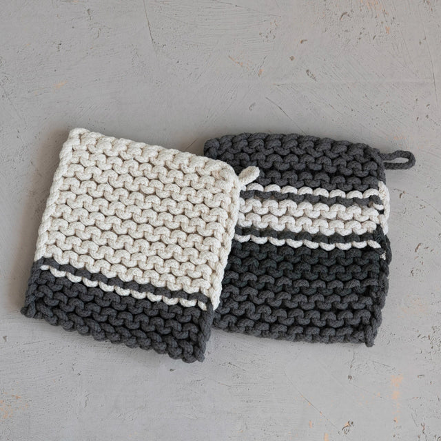 Cotton Crocheted Pot Holder- 2 Styles - Ivory w/ Gray Stripe is backordered and will ship as soon as it is back in stock.