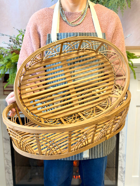 Hand-Woven Rattan Scalloped Nesting Tray - 2 Sizes