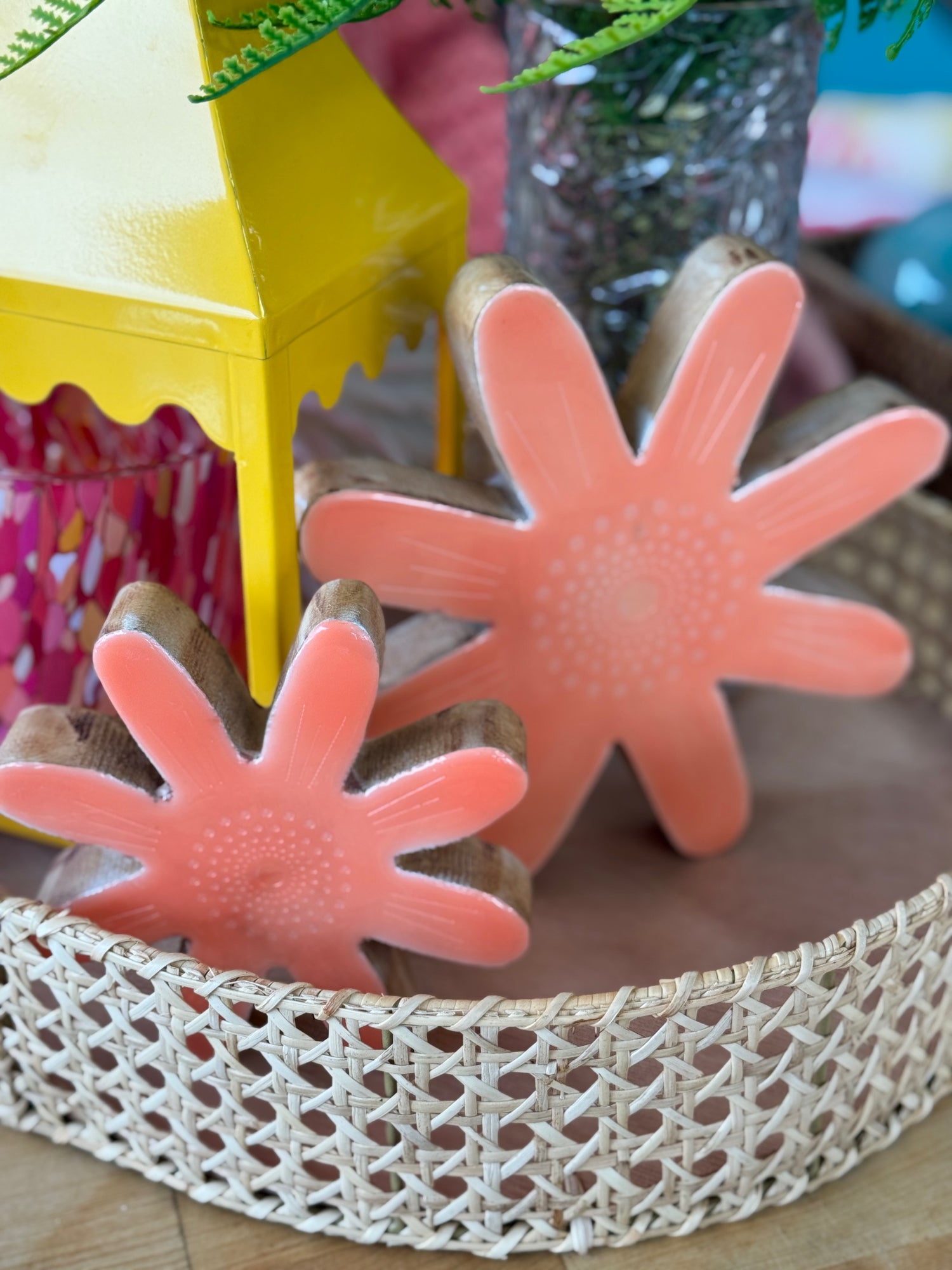 Nested size woven cane trays.