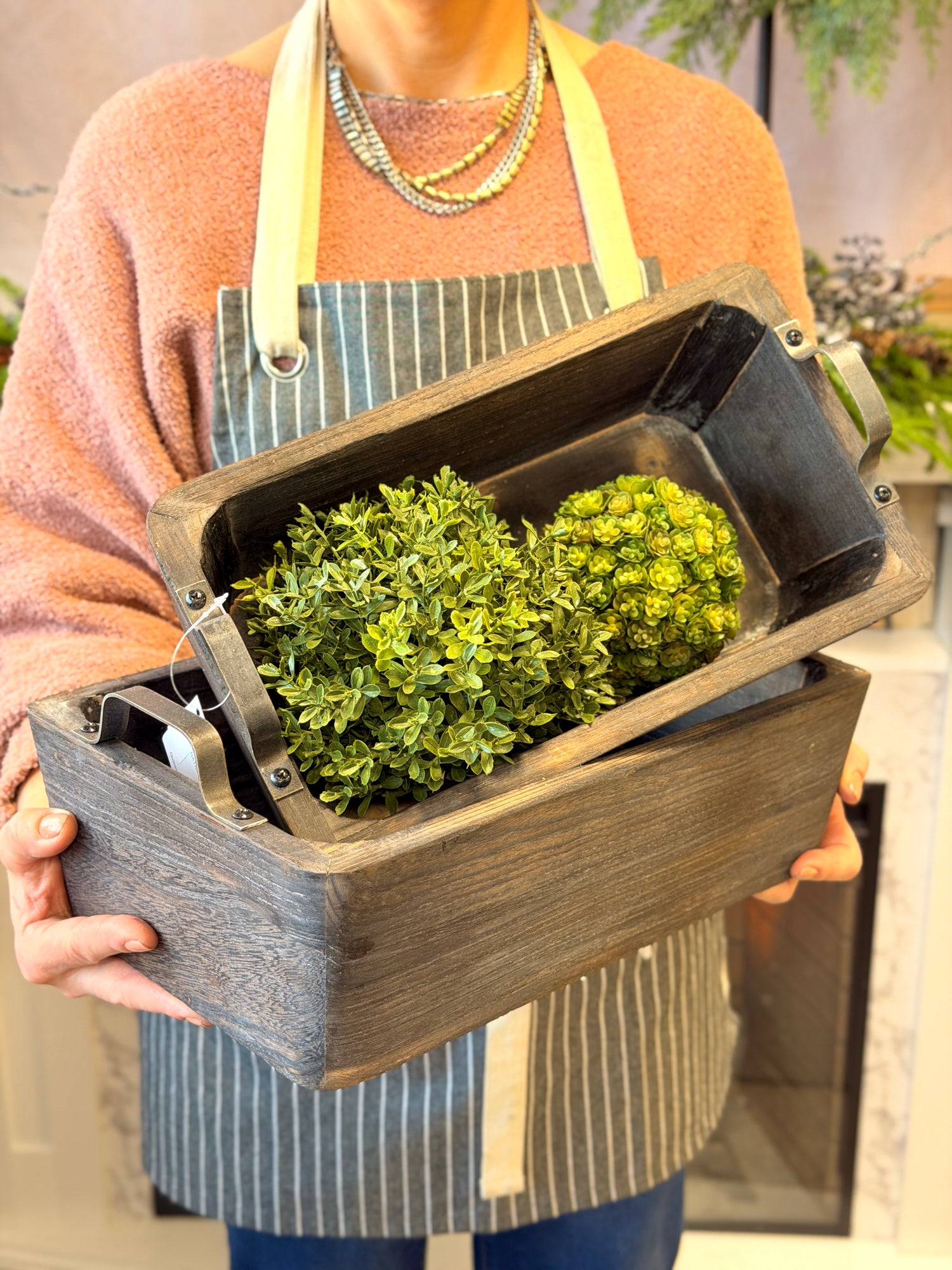 Deep Wooden Tray w/ Metal Handles - 13x7" Small is backordered and will ship as soon as it is back in stock.