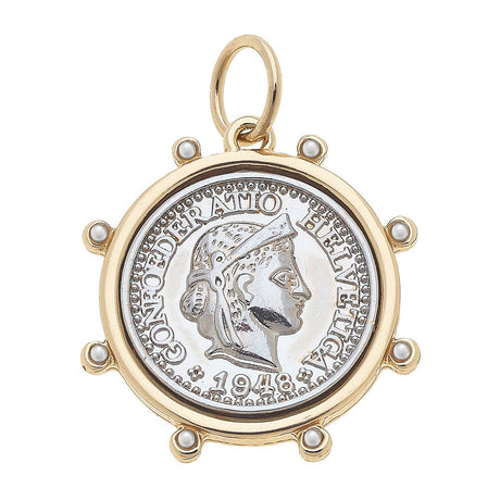 Regular price $10.50Unit priceUnavailableVery low stock (2 units)Studded Coin Charm in Shiny Two Tone