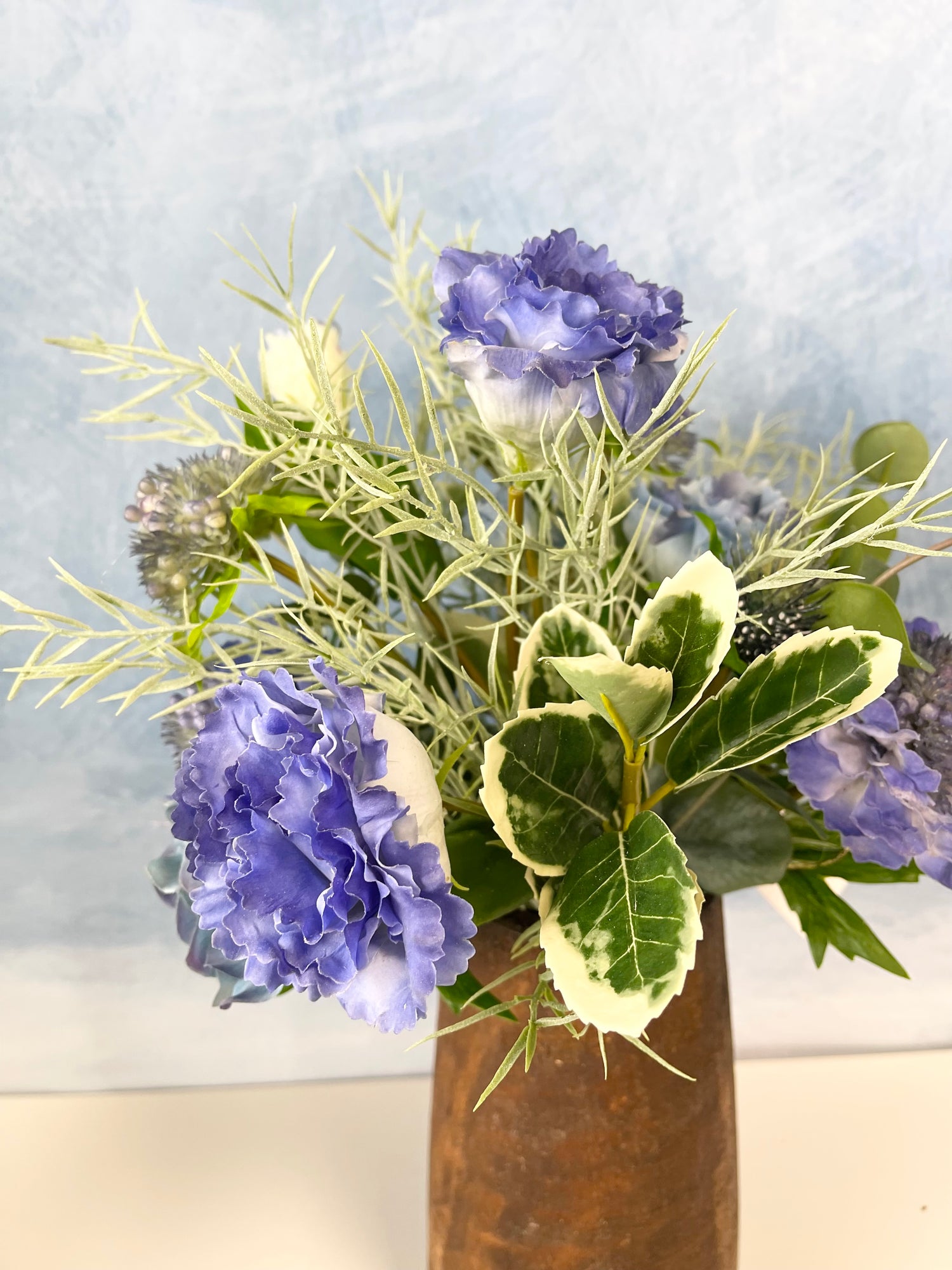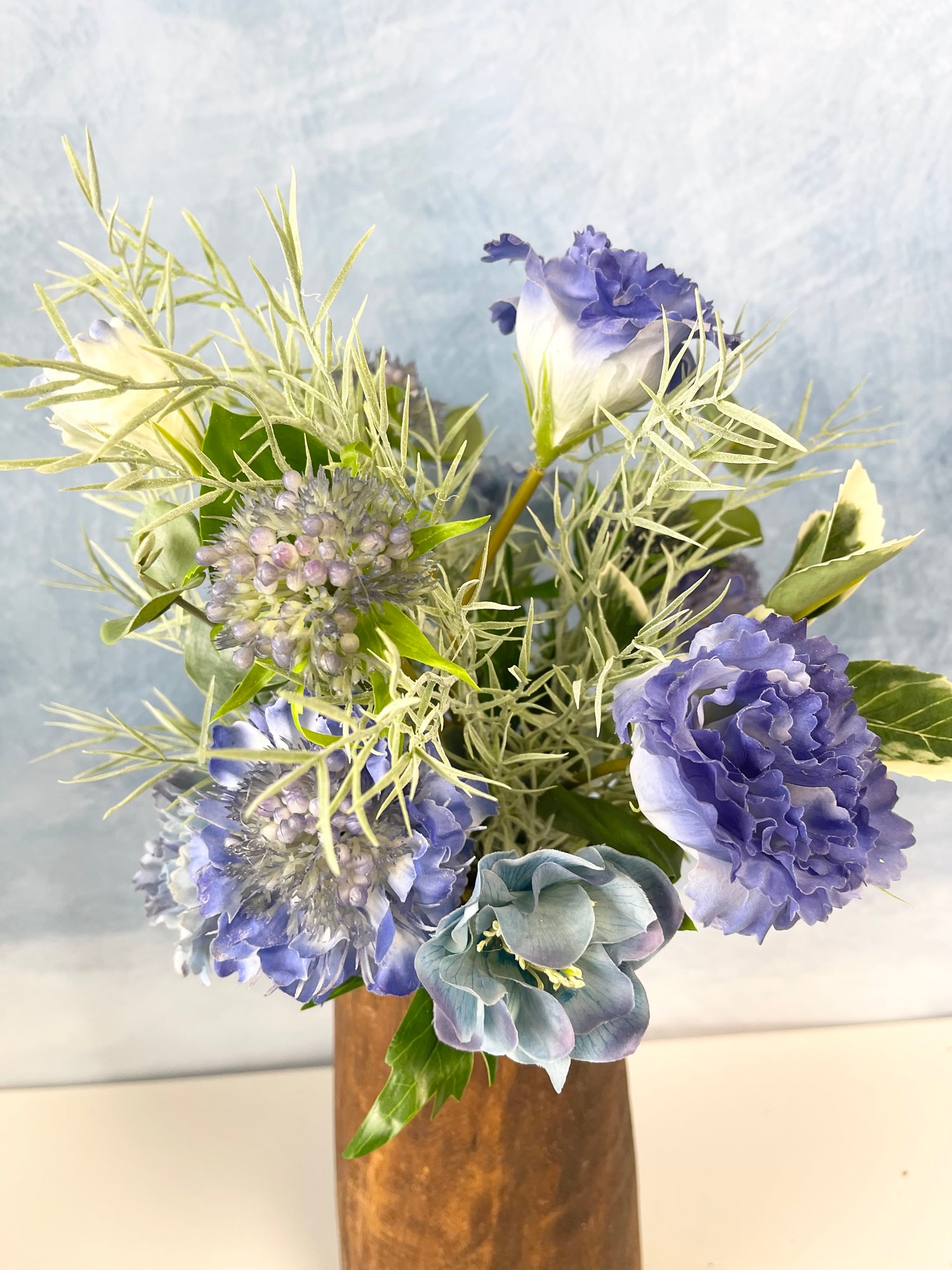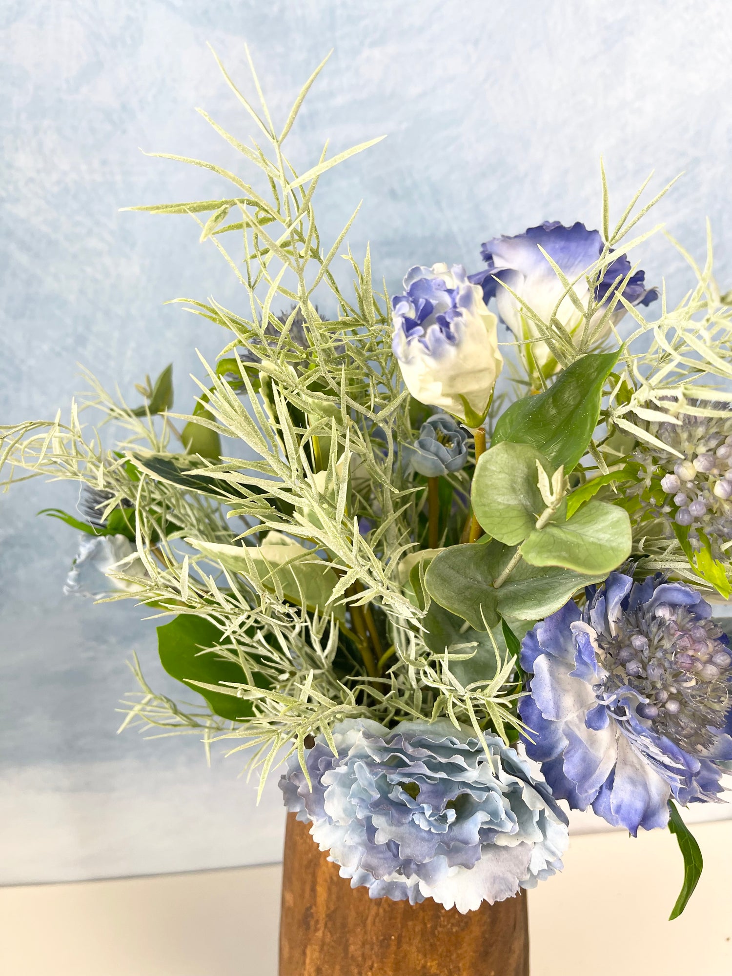 Transform your vase with this custom silk floral design made from high-quality stems.