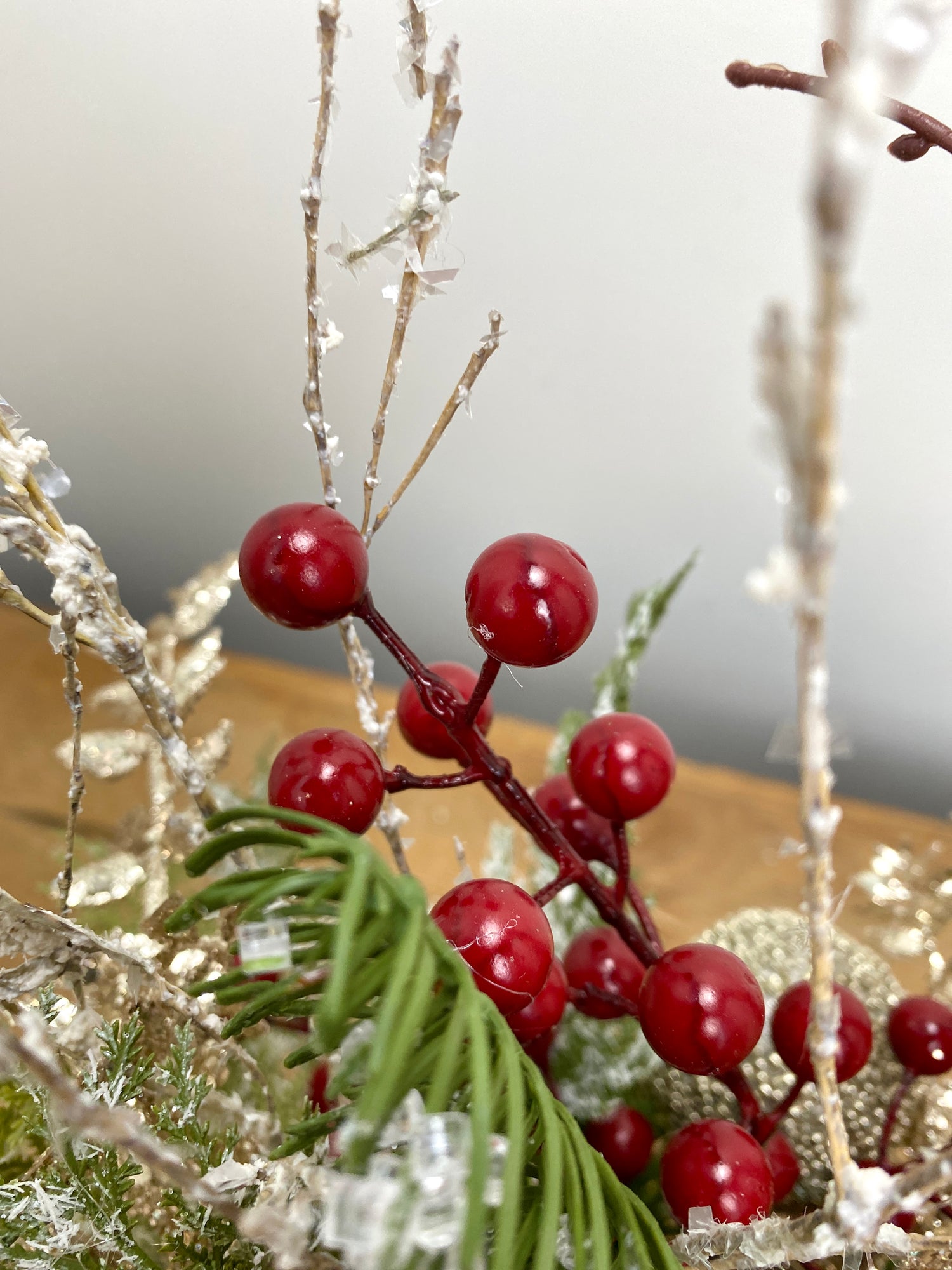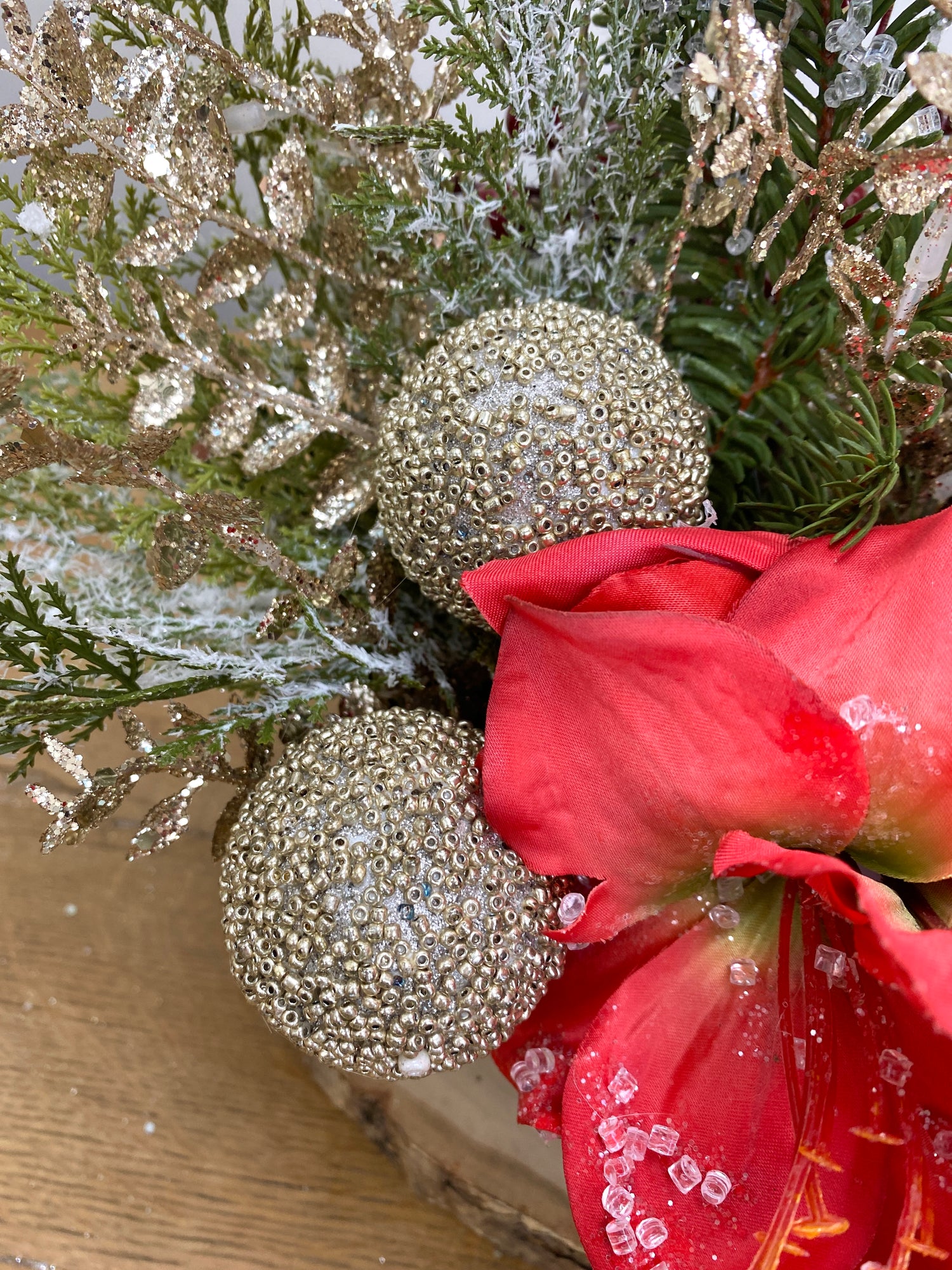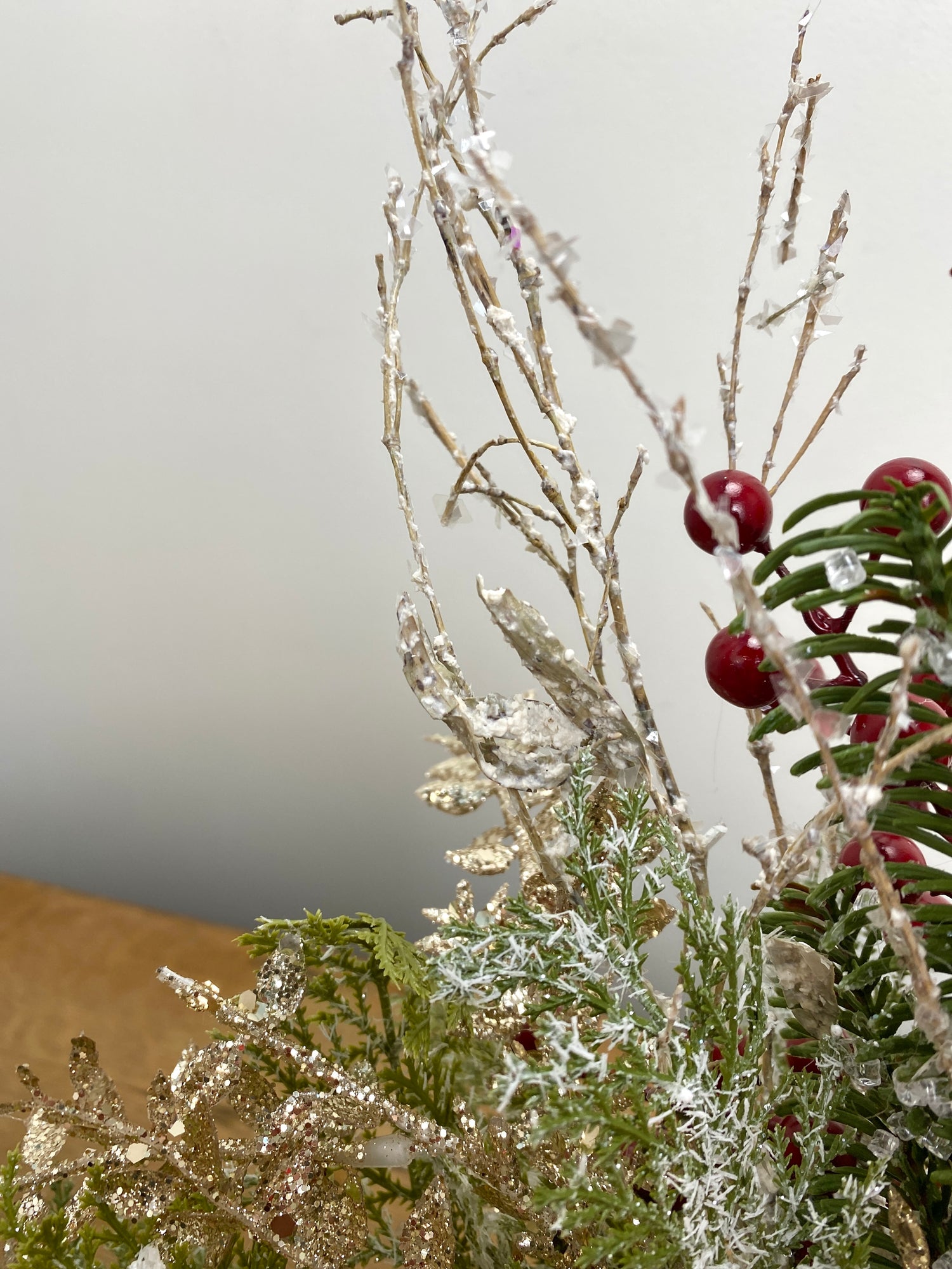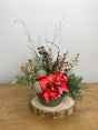 This centerpiece is a one-of-a-kind festive arrangement made by our floral designers.