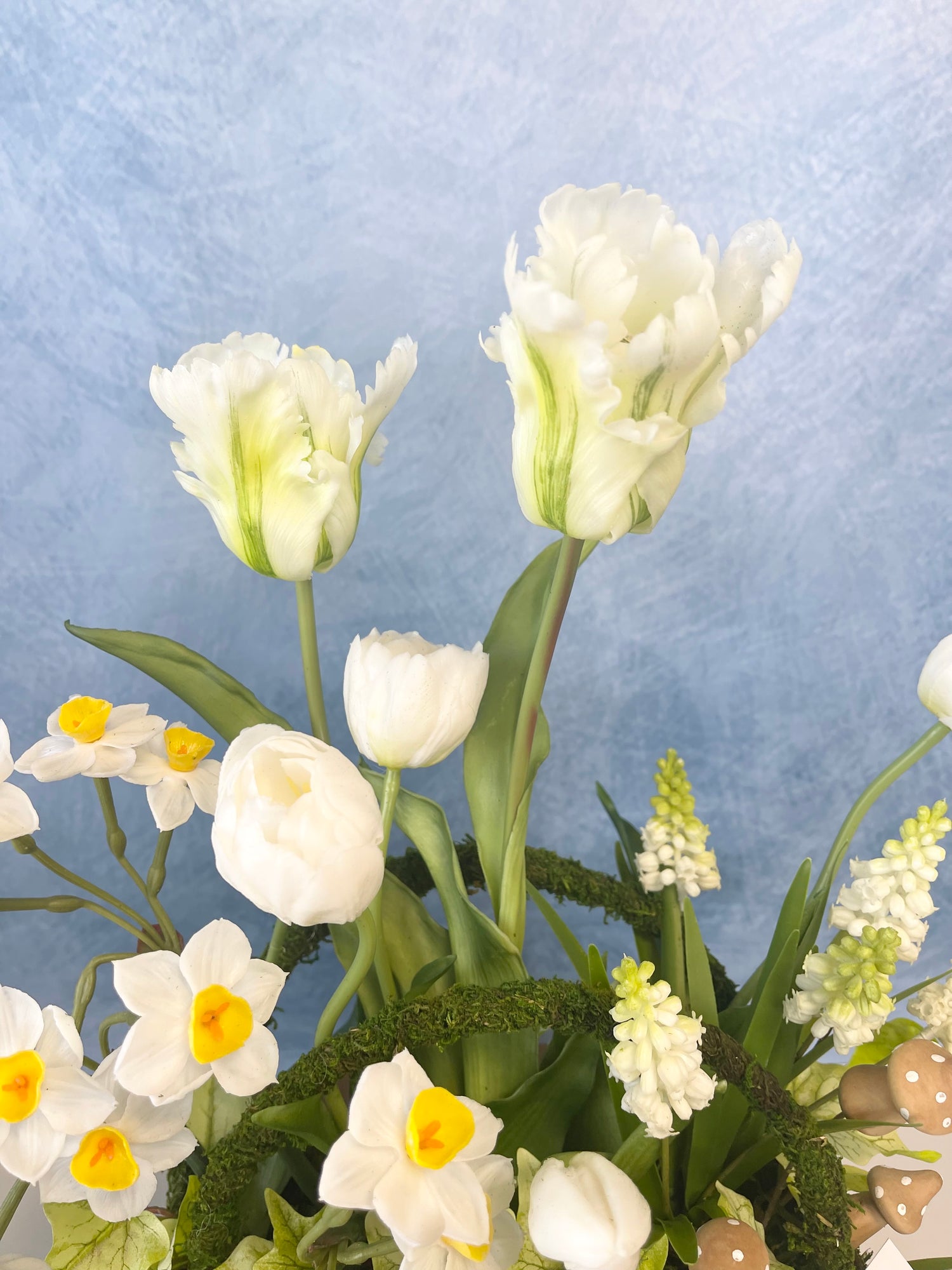 This centerpiece is a one-of-a-kind festive arrangement made by our floral designers.